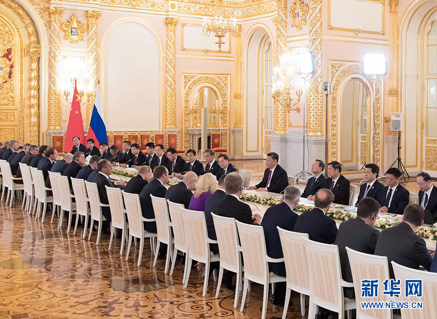 6月5日,國(guó)家主席習(xí)近平在莫斯科克里姆林宮同俄羅斯總統(tǒng)普京會(huì)談。 新華社記者 謝環(huán)馳 攝
