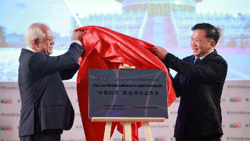 6月5日,由中央廣播電視總臺與俄羅斯政府機關報《俄羅斯報》共同打造的“中俄銳評”聯合評論工作室揭牌儀式在莫斯科舉行。中宣部副部長、中央廣播電視總臺臺長慎海雄,俄羅斯報社長涅戈伊察出席儀式,并共同為“中俄銳評”聯合評論工作室揭牌。