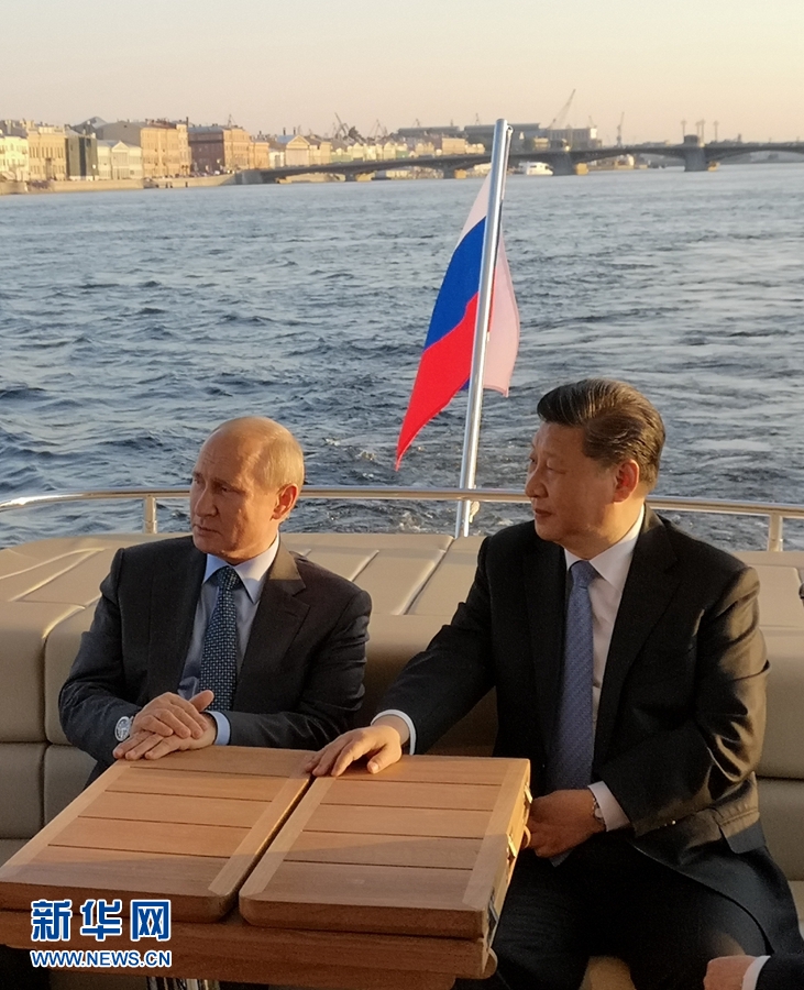 6月6日,國家主席習(xí)近平在圣彼得堡同俄羅斯總統(tǒng)普京再次舉行會晤。普京邀請習(xí)近平共同乘船游覽涅瓦河。新華社記者 李學(xué)仁 攝