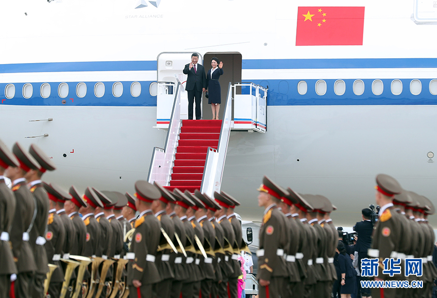 6月20日,中共中央總書(shū)記、國(guó)家主席習(xí)近平乘專機(jī)抵達(dá)平壤,開(kāi)始對(duì)朝鮮民主主義人民共和國(guó)進(jìn)行國(guó)事訪問(wèn)。朝鮮勞動(dòng)黨委員長(zhǎng)、國(guó)務(wù)委員會(huì)委員長(zhǎng)金正恩和夫人李雪主到機(jī)場(chǎng)熱情迎接習(xí)近平和夫人彭麗媛。朝方在機(jī)場(chǎng)舉行隆重歡迎儀式。 新華社記者 黃敬文 攝