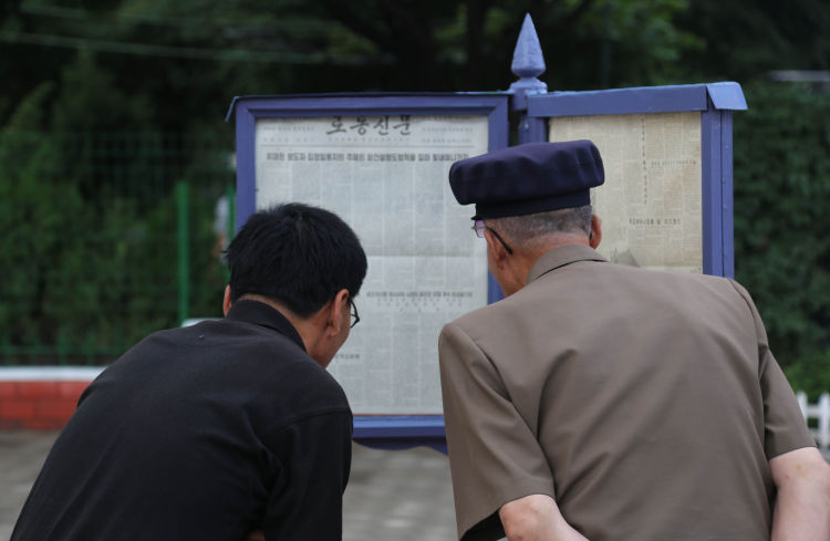 在首都平壤凱旋門附近的一處報(bào)紙櫥窗前,新華社記者看到不少當(dāng)?shù)厝罕娫陂喿x當(dāng)天的《勞動新聞》,很多人都將目光停留在報(bào)紙頭版刊發(fā)的習(xí)近平總書記署名文章上,認(rèn)真研讀。