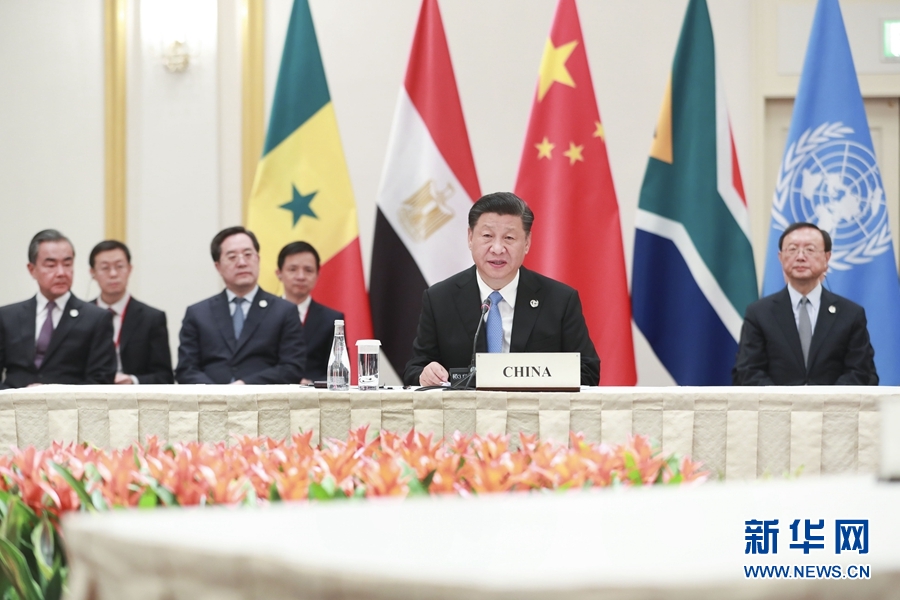 6月28日,國(guó)家主席習(xí)近平在大阪主持中非領(lǐng)導(dǎo)人會(huì)晤。中非合作論壇前任非方共同主席國(guó)南非總統(tǒng)拉馬福薩、非洲聯(lián)盟輪值主席國(guó)埃及總統(tǒng)塞西、中非合作論壇現(xiàn)任非方共同主席國(guó)塞內(nèi)加爾總統(tǒng)薩勒和聯(lián)合國(guó)秘書長(zhǎng)古特雷斯出席。 新華社記者 龐興雷 攝