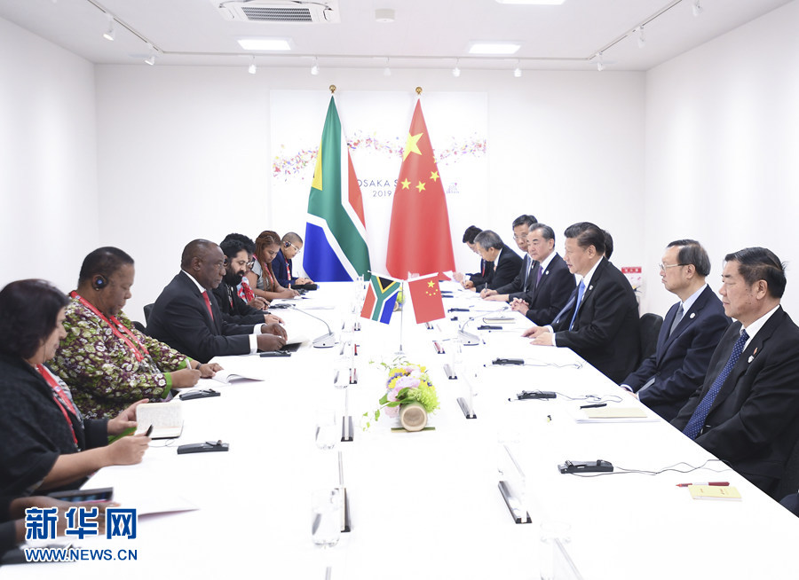6月28日,國(guó)家主席習(xí)近平在大阪會(huì)見南非總統(tǒng)拉馬福薩。 新華社記者 燕雁 攝