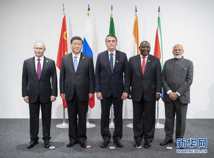 6月28日,金磚國家領(lǐng)導(dǎo)人會晤在大阪舉行。國家主席習近平、巴西總統(tǒng)博索納羅、俄羅斯總統(tǒng)普京、印度總理莫迪、南非總統(tǒng)拉馬福薩出席。新華社記者 李濤 攝