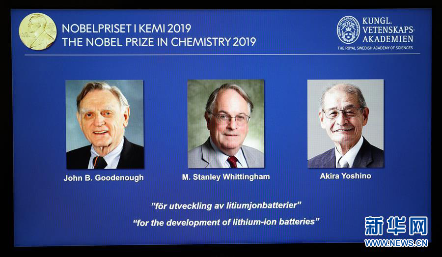 新華社斯德哥爾摩10月9日電(記者和苗 付一鳴)瑞典皇家科學(xué)院9日宣布,將2019年諾貝爾化學(xué)獎授予來自美國的科學(xué)家約翰·古迪納夫、斯坦利·惠廷厄姆和日本科學(xué)家吉野彰,以表彰他們在鋰離子電池研發(fā)領(lǐng)域作出的貢獻。