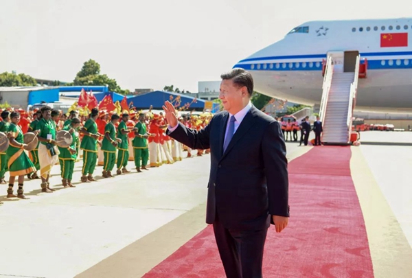 11日下午2時10分許,習主席乘坐的專機抵達金奈國際機場。