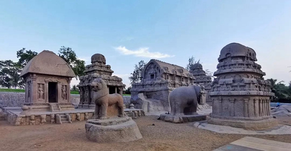 馬哈巴利普拉姆古寺廟建于公元7至8世紀,由阿周那石雕、五戰(zhàn)車神廟、海岸神廟等古跡組成。