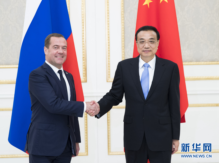 新華社塔什干11月1日電(記者白潔 蔡國棟)當(dāng)?shù)貢r間11月1日晚,國務(wù)院總理李克強(qiáng)在塔什干會見出席上海合作組織成員國總理會的俄羅斯總理梅德韋杰夫。