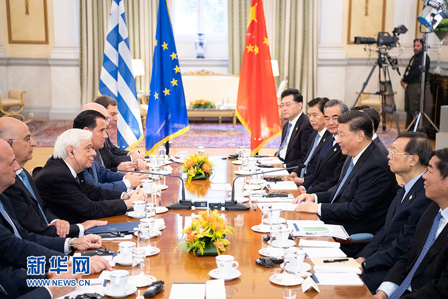 當?shù)貢r間11月11日,國家主席習(xí)近平在雅典同希臘總統(tǒng)帕夫洛普洛斯會談。 新華社記者 姚大偉 攝