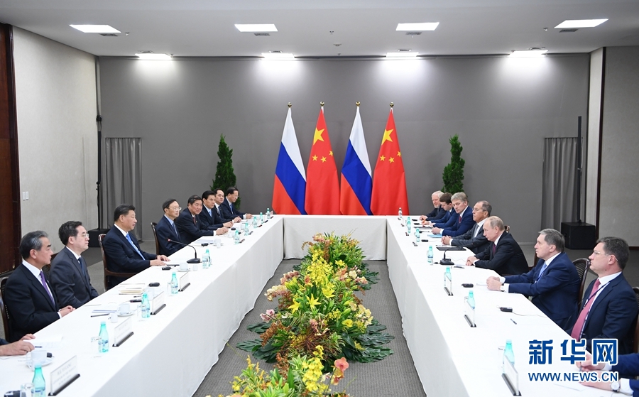 當地時間11月13日,國家主席習近平在巴西利亞會見俄羅斯總統(tǒng)普京。新華社記者 張領 攝