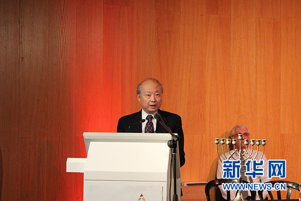 中國駐以色列大使詹永新發(fā)表致辭。記者 尚昊 攝