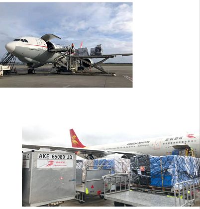 特別值得一提的是海航集團(tuán)的譚向東副董事長、高建副總裁,為了協(xié)助我們把捐贈物資盡快運(yùn)回國內(nèi),高度重視,靠前指揮,第一時(shí)間給予全面而具體的支持。旗下的首都航空公司市場部副總顧凌毅、貨運(yùn)中心高級經(jīng)理田國偉協(xié)調(diào)陳肖藝、倪福元、李小戈、首航西安基地總監(jiān)周瑞喜、海航速運(yùn)境外管理部副總經(jīng)理池夢瑩以及郭宇萍等一批業(yè)務(wù)骨干加班加點(diǎn),克服了時(shí)間緊張,物資量大,境外時(shí)差等諸多困難,創(chuàng)造了許多個(gè)“首航第一次”。蟠龍國際集團(tuán)、中遠(yuǎn)海運(yùn)航空公司則為這場“空中接力”提供了高端快捷的航空物流平臺。而在第四批物資回運(yùn)過程中,更是得到了溫州市防疫指揮部的鼎力相助,幫助我們把西班牙巴塞羅那收集點(diǎn)上的捐贈物資,從布魯塞爾轉(zhuǎn)道回國。