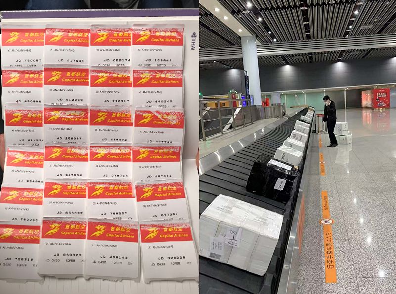 2月10日,第二批捐贈物資從葡萄牙里斯本(JD0403次航班)出發(fā),順利抵達(dá)西安國際機(jī)場。機(jī)上共裝載了38個(gè)托盤5.5噸,124507件捐贈物資??們r(jià)值人民幣1000008元。