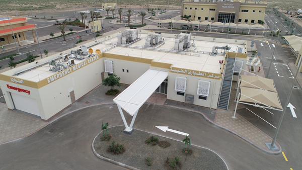 圖為吉贊阿美石油應(yīng)急響應(yīng)中心項(xiàng)目一號(hào)地塊應(yīng)急醫(yī)療中心俯視圖。(中鐵十八局集團(tuán)沙特阿拉伯公司供圖)