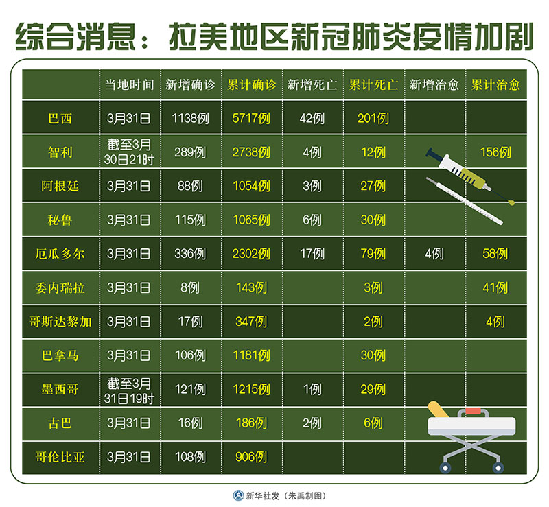 新華社墨西哥城3月31日電 綜合新華社駐拉美地區(qū)記者報(bào)道:拉美地區(qū)多國(guó)新冠肺炎疫情持續(xù)加劇,各國(guó)繼續(xù)加強(qiáng)防控。