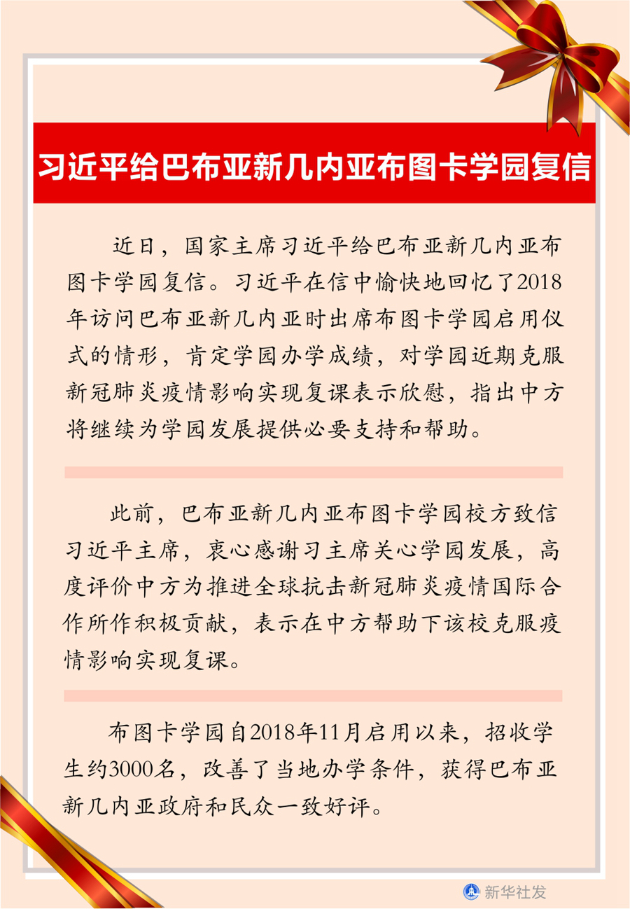 習(xí)近平給巴布亞新幾內(nèi)亞布圖卡學(xué)園復(fù)信