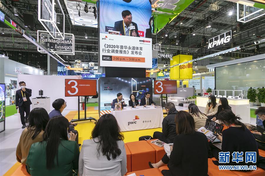 11月5日,普華永道在第三屆進(jìn)博會(huì)服務(wù)貿(mào)易展區(qū)現(xiàn)場(chǎng)直播《2020年普華永道體育行業(yè)調(diào)查報(bào)告》發(fā)布會(huì)。新華社記者 王翔 攝