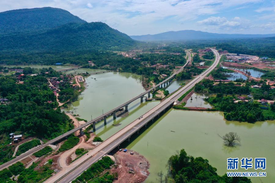 這是10月7日在老撾萬象省航拍的建設(shè)中的萬萬高速公路。(無人機拍攝)新華社發(fā)(云南建投集團供圖)
