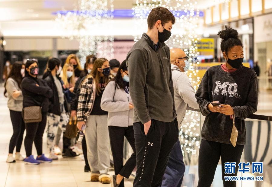 11月27日,在美國(guó)伊利諾伊州羅斯芒特,顧客排隊(duì)等候進(jìn)店購(gòu)物。
