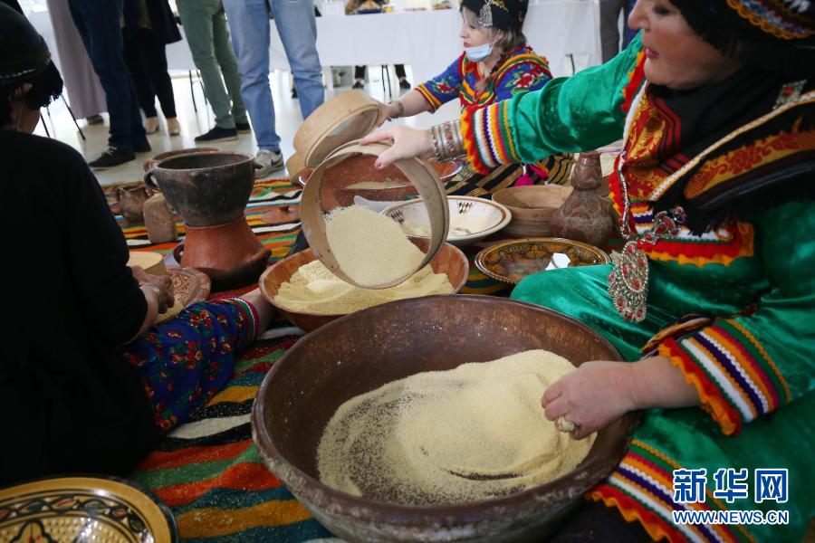 12月17日,在阿爾及利亞首都阿爾及爾,柏柏爾婦女在一個文化活動上制作“古斯古斯”。