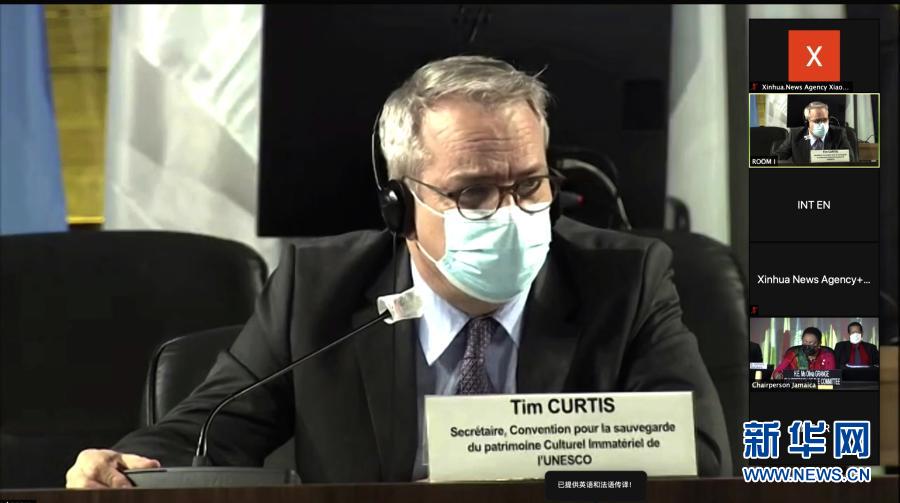 這張12月18日的視頻截圖顯示的是,聯(lián)合國教科文組織《保護(hù)非物質(zhì)文化遺產(chǎn)公約》秘書蒂姆·柯蒂斯在法國巴黎參加線上視頻會議。新華社發(fā)