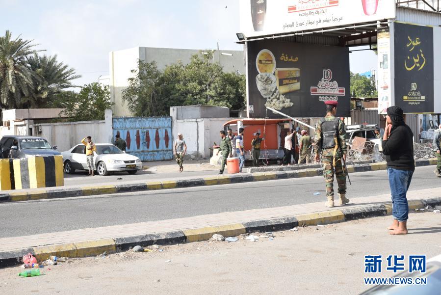 12月30日,在也門亞丁,政府軍士兵在爆炸后封鎖了亞丁國際機(jī)場的入口。新華社發(fā)(穆拉德·阿卜杜攝)