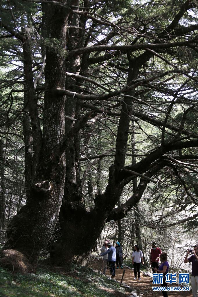4月18日,游人在黎巴嫩巴魯克雪松保護區(qū)內(nèi)游覽。
