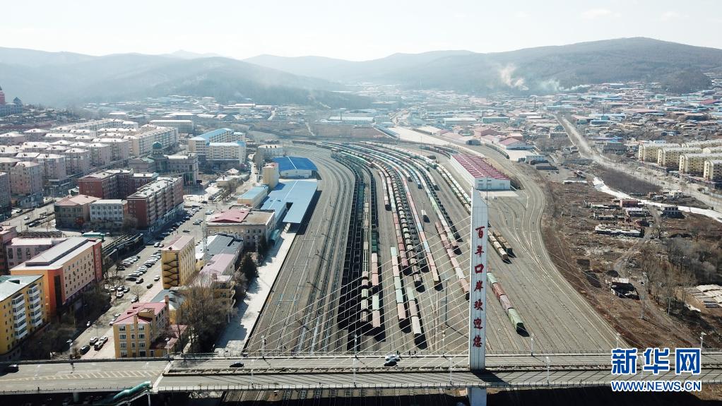 這是3月31日拍攝的綏芬河站南場,中歐班列從這里出入境(無人機(jī)照片)。新華社記者 王建威 攝