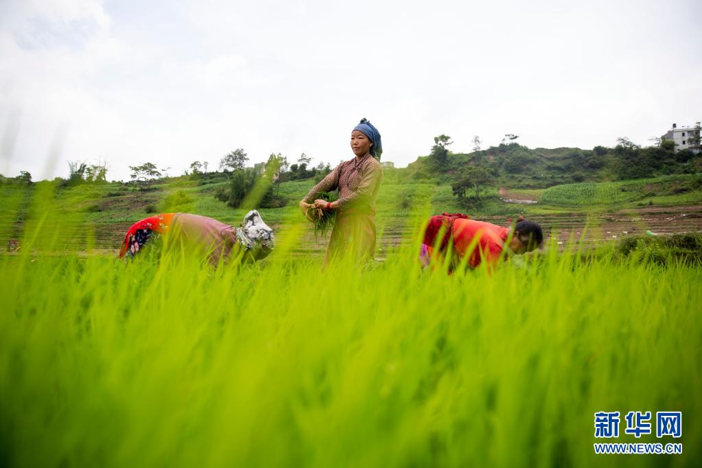 6月29日,農(nóng)民在尼泊爾中部勒利德布爾附近的稻田里插秧。