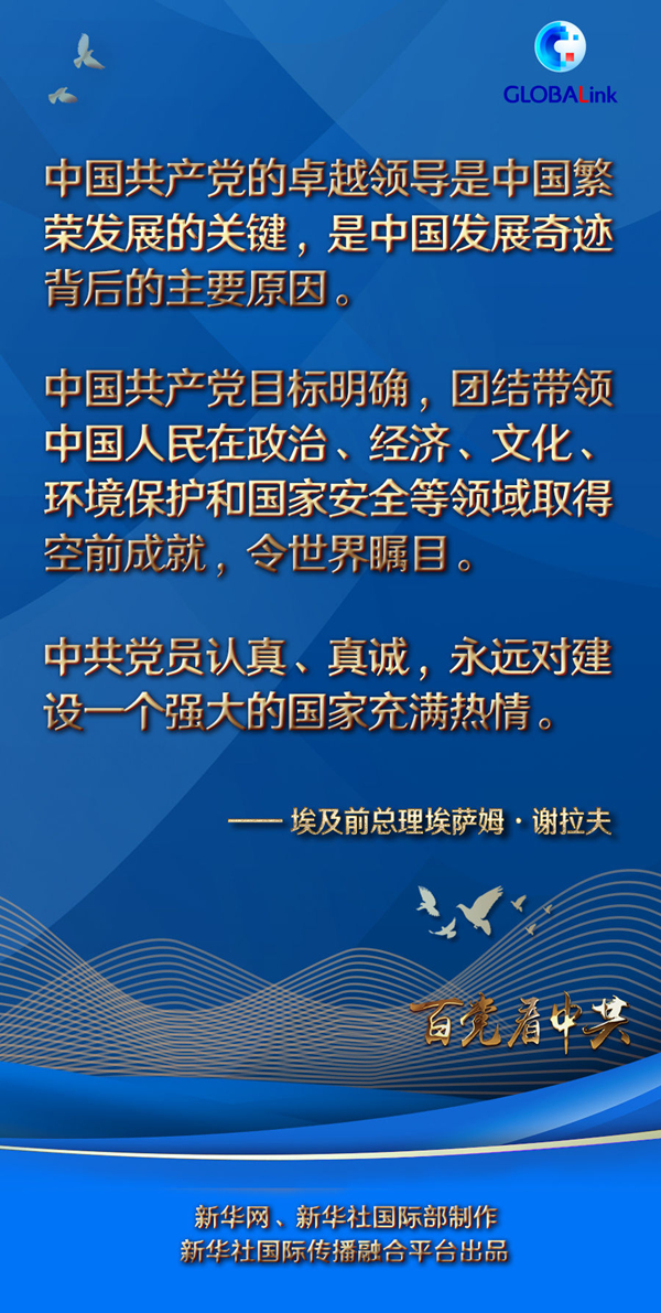 新華社開羅7月2日電 埃及前總理埃薩姆·謝拉夫日前在開羅通過視頻方式接受新華社記者專訪時表示,中國共產(chǎn)黨的卓越領(lǐng)導(dǎo)是中國繁榮發(fā)展的關(guān)鍵,是“中國發(fā)展奇跡背后的主要原因”。