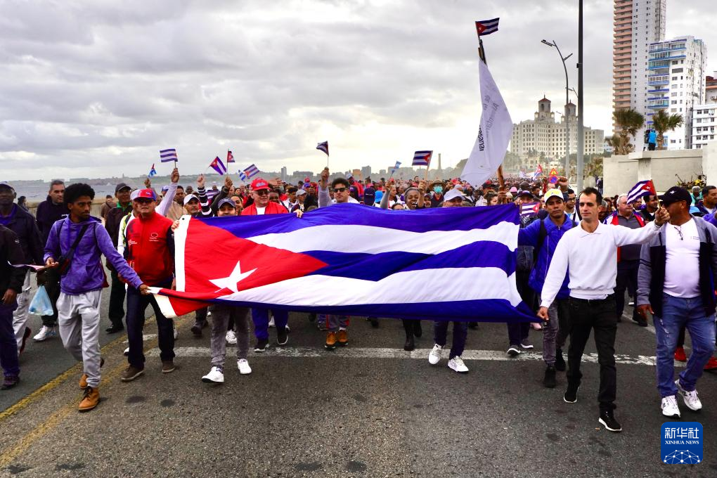 “你现在听到的这些声音,是在支持革命、支持菲德尔、支持一个有尊严且拥有自身发展规划的国家。”哈瓦那市民何塞·卡米洛在游行中对记者说。