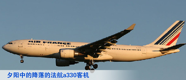 夕陽(yáng)中的法航a330客機(jī) (圖)